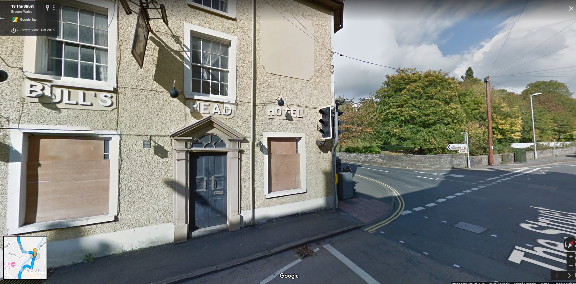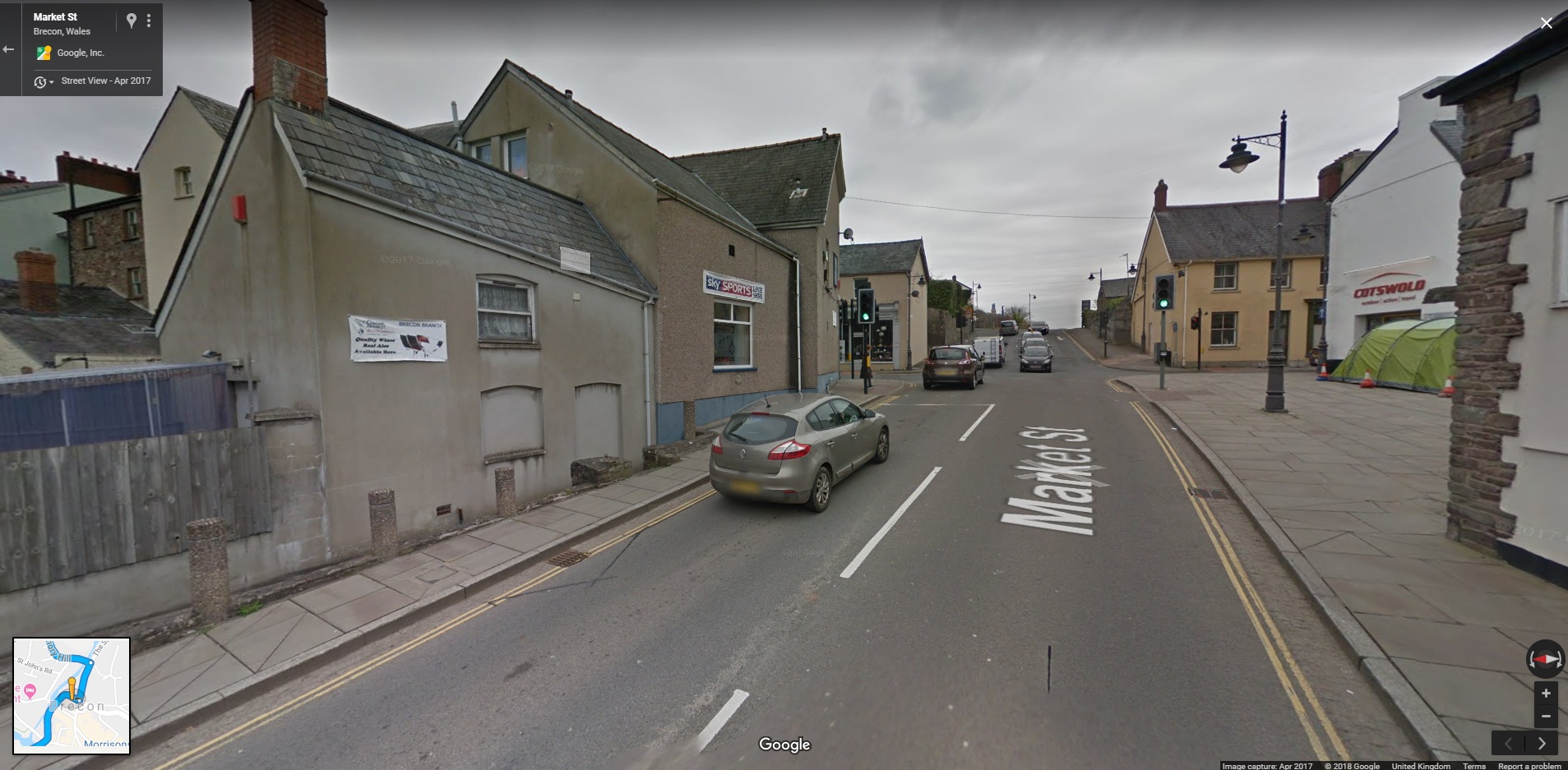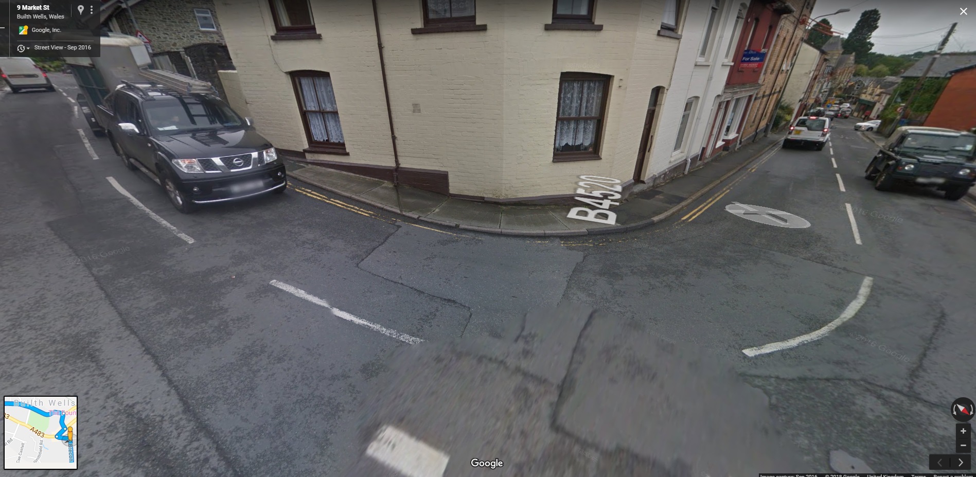 Follow the B4250 into Builth, the road bends left onto Market Street...