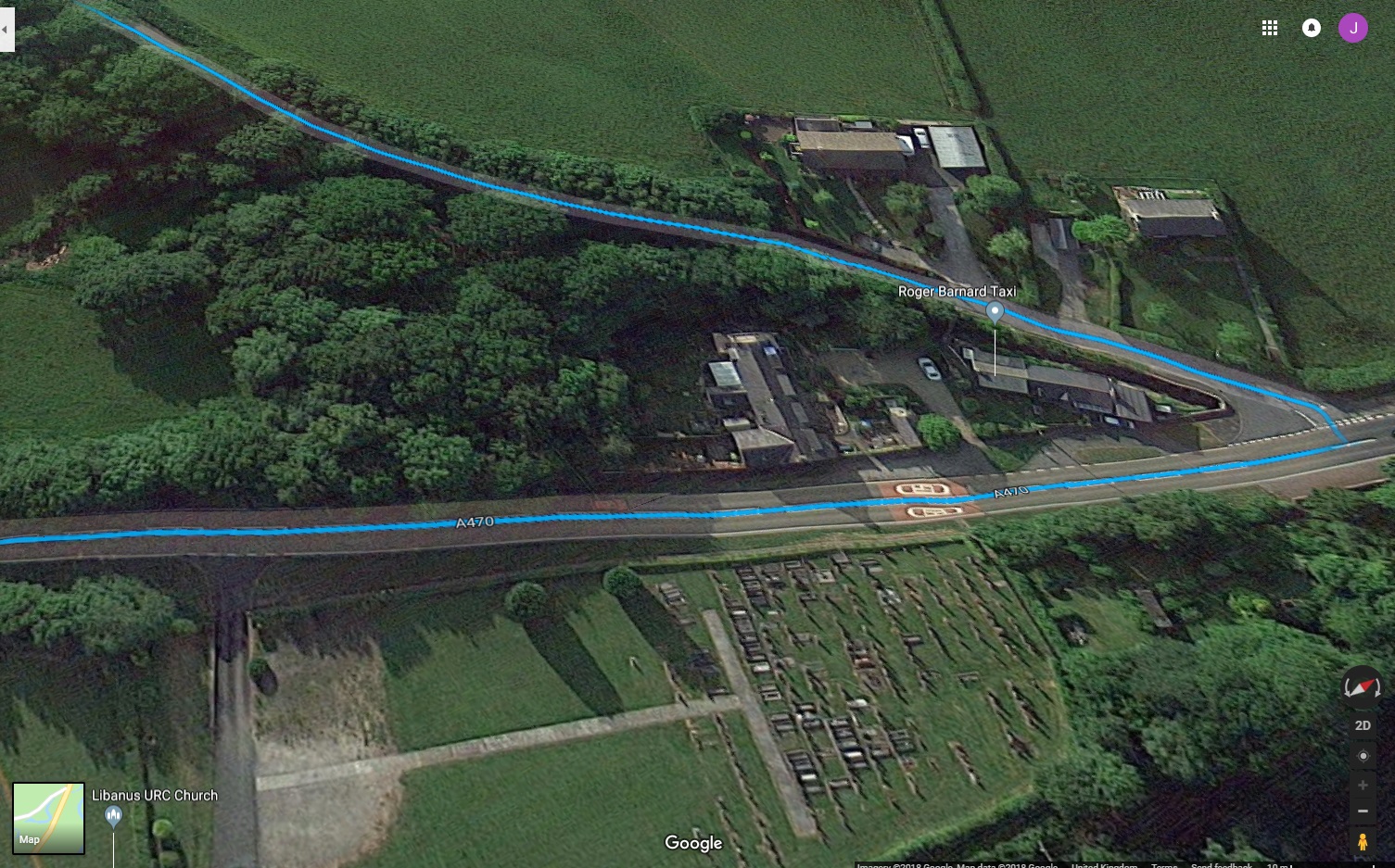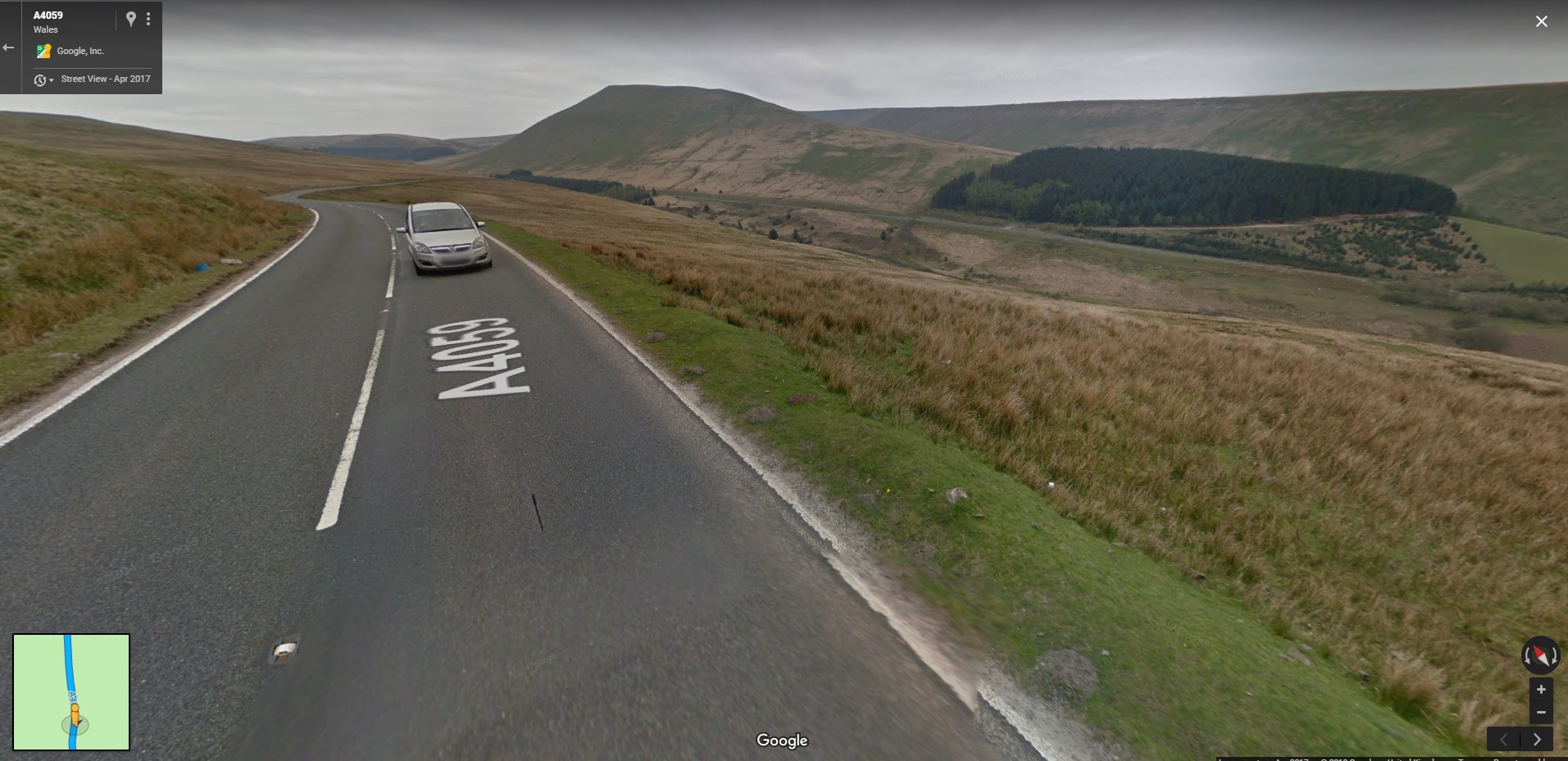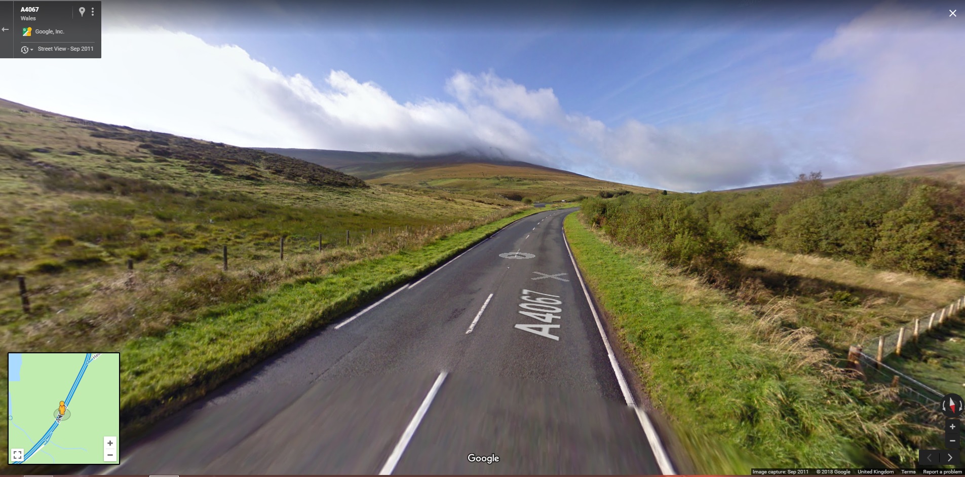 As we run along the A40 towards Sennybridge, we will be taking a left off the High Street onto the A4067 (left ‘fork’ in picture below).