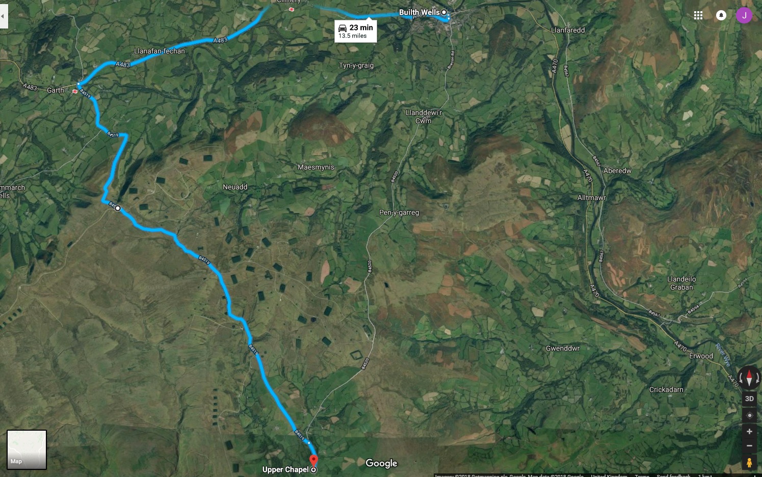 Stage 6. Builth Wells -> Garth (A483 staging route) -> Upper Chapel (B4519)