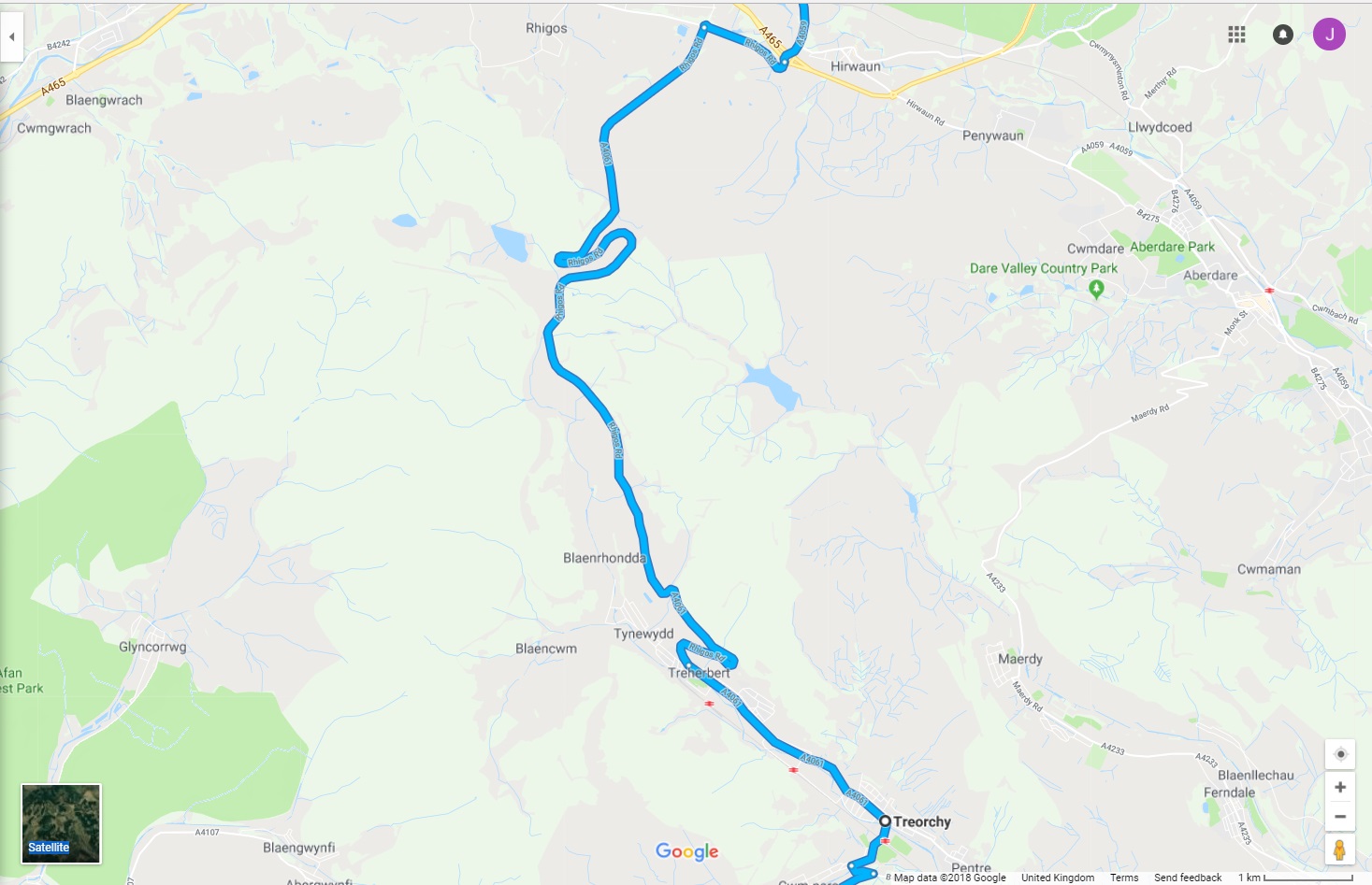 A mixture of fast cross country roads and a bit of twisty stuff as we approach Treorchy…