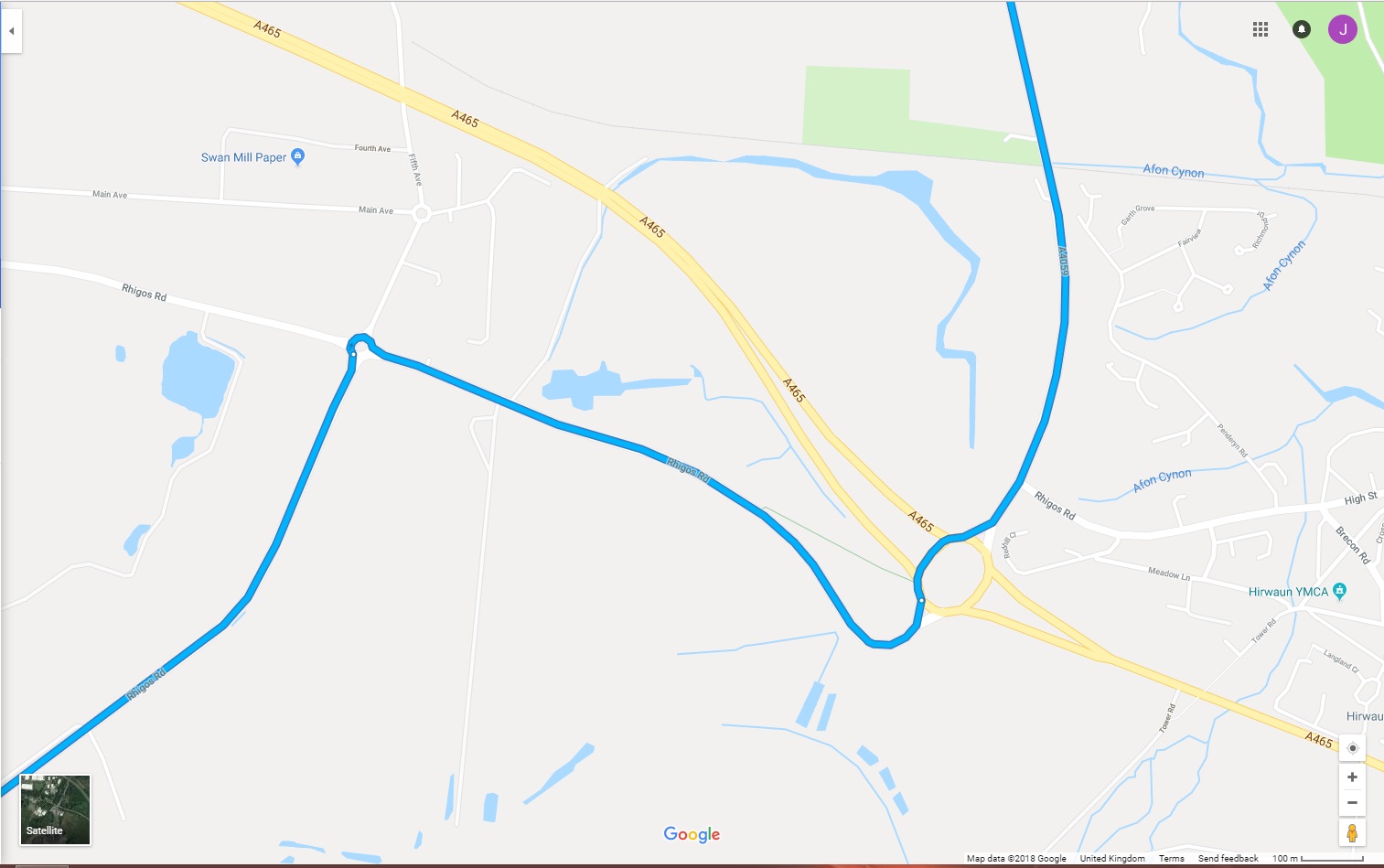 At the end of the A4061 there is a mini roundabout at Rhigos. Take the 3rd exit (Rhigos Road) towards Hirwaun and then at the next ‘larger’ roundabout, take the northbound A4059 towards Brecon.